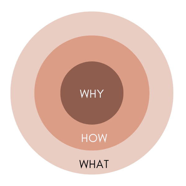 有一本我很愛的書叫「找到你的為什麼」,作者是賽門‧西奈克(Simon Sinek),他提出一個「黃金圈理論」,他認為偉大的領導者是由「Why」→「How」→「What」的順序與其他人溝通,而一般平庸的領導者則是反過來,請參考下圖。